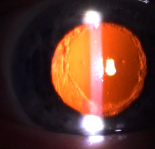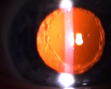 Durch das Wachstum von verbliebenen Linsenzellen im Bereich des peripheren Linsenkapselsackes kann es im Laufe von 1 - 5 Jahren zur Ausbildung von Nachstar kommen, d.h. Auflagerungen auf der Linsenkapsel, die wenn sie im optischen Zentrum liegen, das Sehvermögen erheblich reduzieren können.